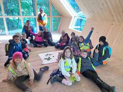 Am 3. Oktober fand bei bester Witterung unsere Naturparkexkursion in den Wald statt. Gemeinsam mit unserer Rangerin Lisa wanderten wir zum Waldklassenzimmer. Auf dem Weg dorthin lernten die Kinder viel Spannendes über die heimischen Bäume und ihre Früchte. Im Waldklassenzimmer beschäftigten wir uns anschließend mit den Stockwerken des Waldes und deren Bewohner. Abgerundet wurde der erlebnisreiche Vormittag durch lustige Spiele am Waldrand, bei denen sich alle noch einmal richtig austoben konnten. Es war ein schöner Vormittag in der Natur, an den wir uns noch lange gerne erinnern werden.