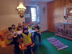Wie das „Schiefe Haus“ in Sibratsgfäll entstanden ist, wollte die erste Klasse genauer herausfinden. Früh am Morgen machten wir uns auf den Weg nach Sibratsgfäll und wanderten anschließend weiter in Richtung Rindberg, wo das „Schiefe Haus“ steht.